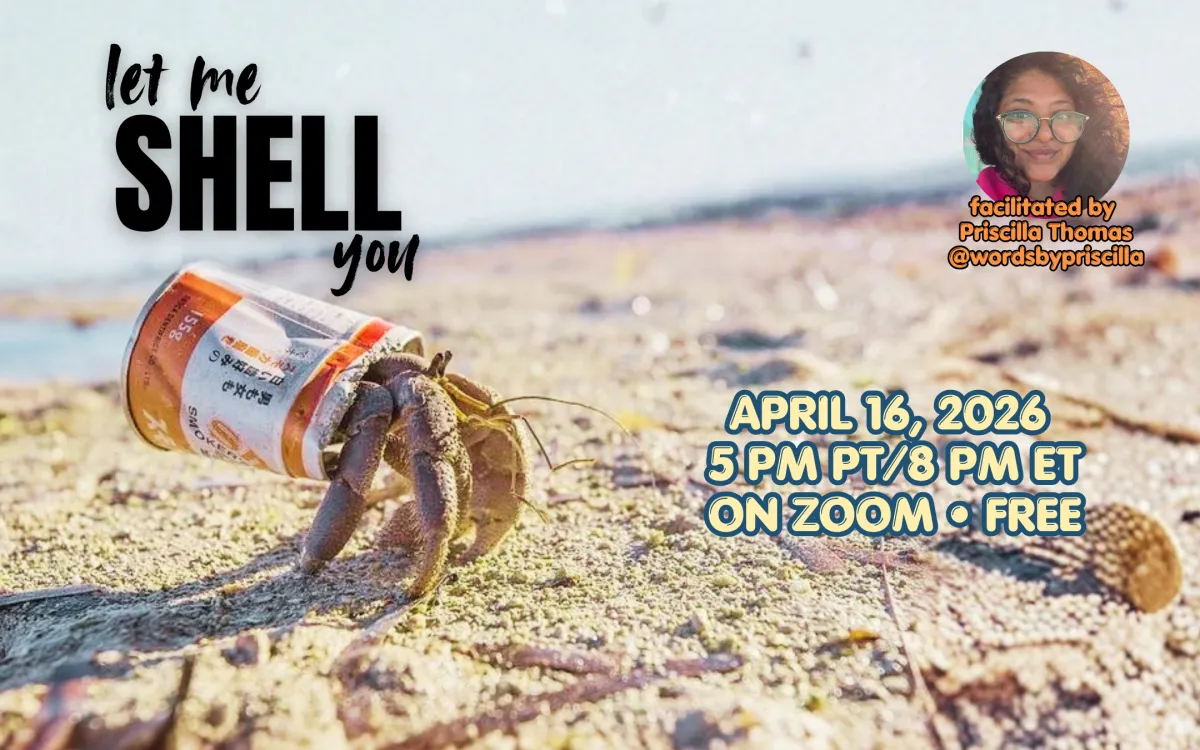 We'll read & discuss hermit crabs that bring the reader into the world of the story, then dig into prompts and writing time. Add some new shells to your April poetry count, or see what a hermit crab can do for a work-in-progress. Whether you're familiar with hermit crab writing, curious to try some out, or brand new to them, you're welcome!